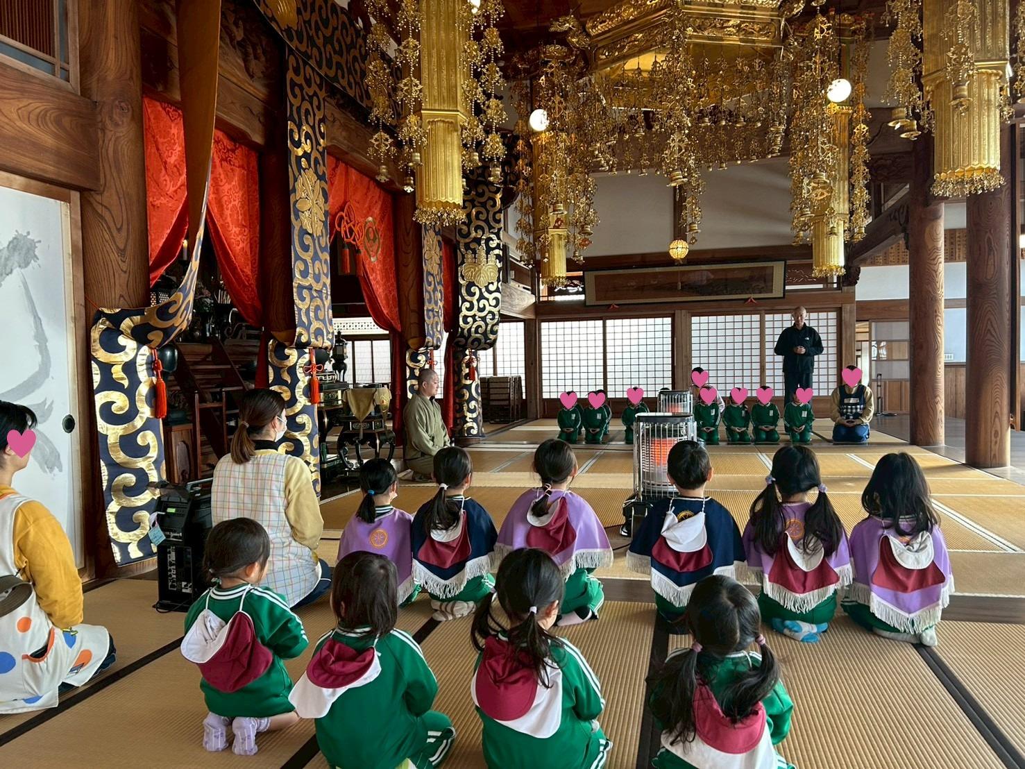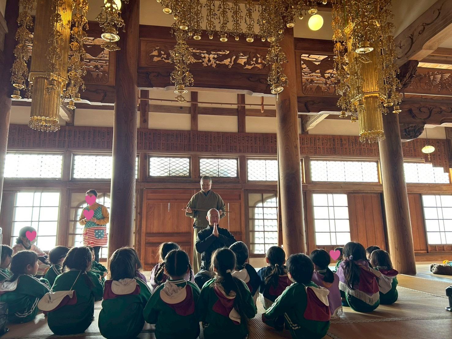 本堂で坐禅を行い、般若心経をお唱えし、お釈迦様に感謝の気持ちをお伝えしました。
