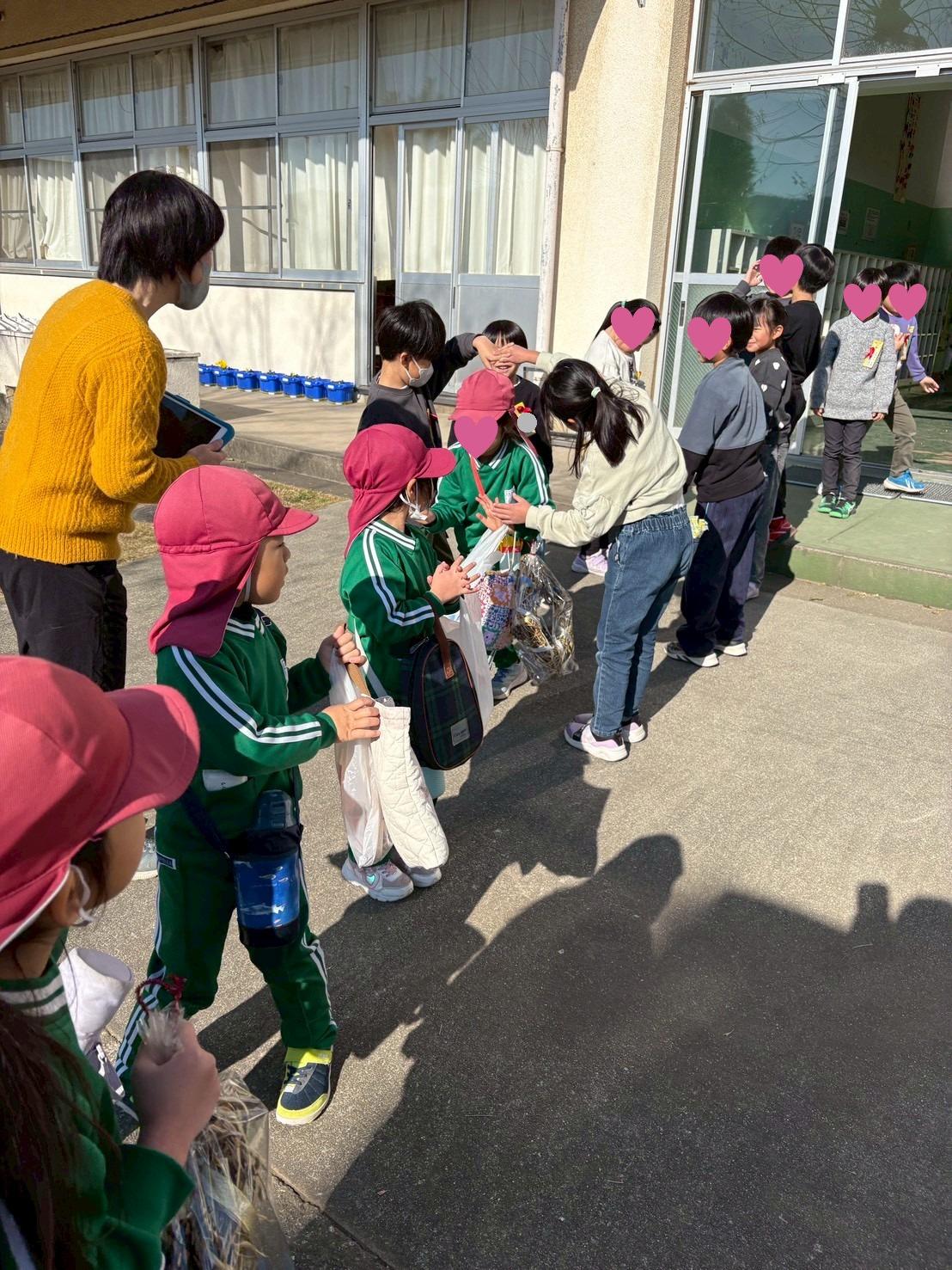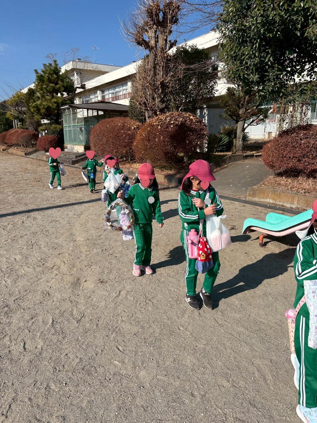 手作りのお土産をたくさんいただいて、幼稚園に帰ります。