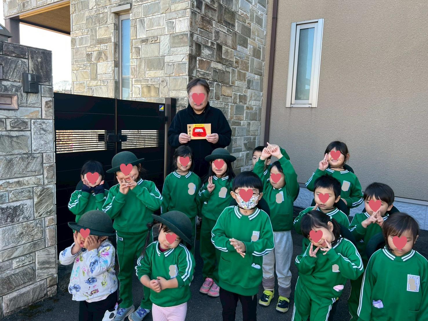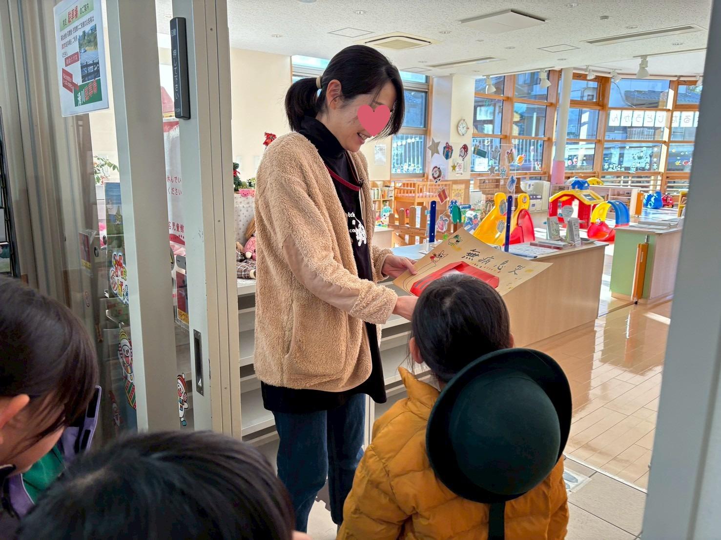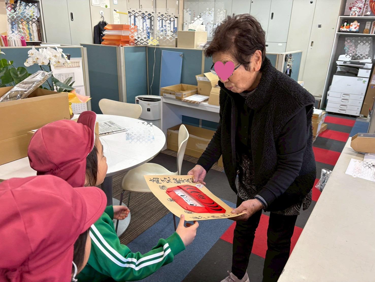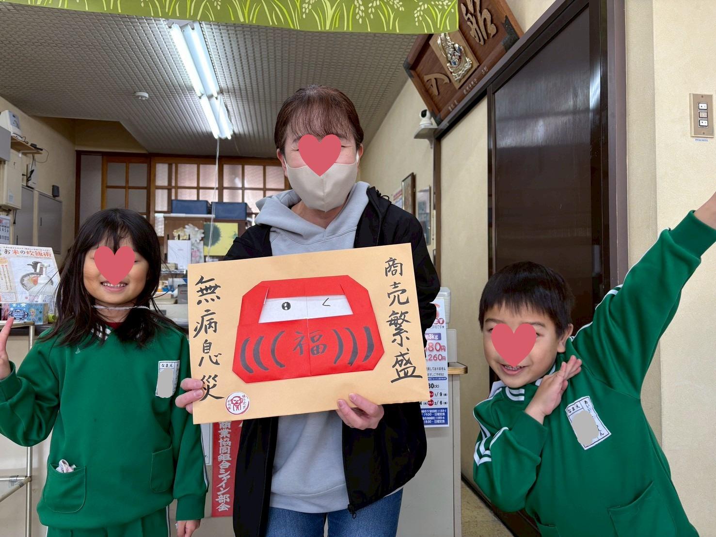 子どもたちが作った、だるまさんの絵馬を、みなさんにお渡ししました!