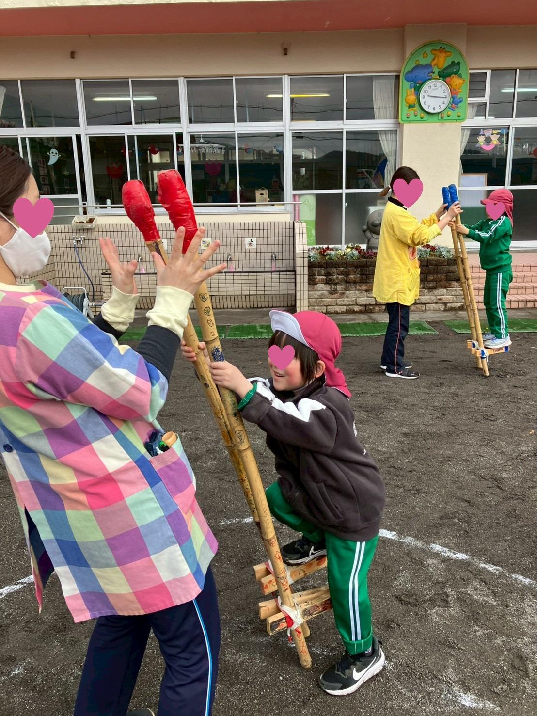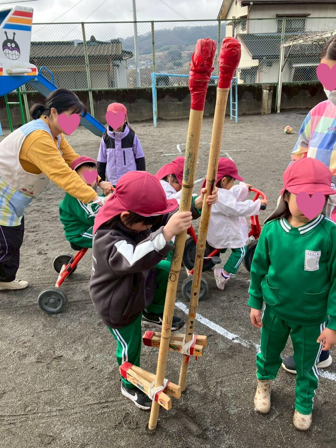 竹馬に挑戦!!